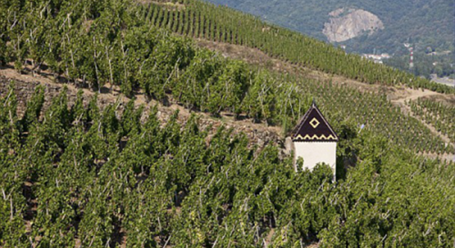 在北羅納河谷葡萄園,河流流經之處多為狹窄的峽谷和陡峭的山坡,因此葡萄園也更多地種植在靠近河流的陡坡上。由于離海洋較遠,北羅納河谷葡萄園以大陸性氣候為主,但又多多少少會受到地中海(Mediterranean)氣候的影響,夏季炎熱干燥,冬季寒冷少雨。這里的土壤以礫石、石灰巖和頁巖為主,排水性能優越。這樣一來,種植在山坡上的葡萄藤可以更好地接收生長季充足的陽光,再加上排水性良好的土壤,有助于葡萄果實更好地成熟。北羅納河谷葡萄園著名的子產區羅第丘(Cote Rotie)在法語中意為“被炙烤的山坡”,就很形象地描繪了這一風土特點。