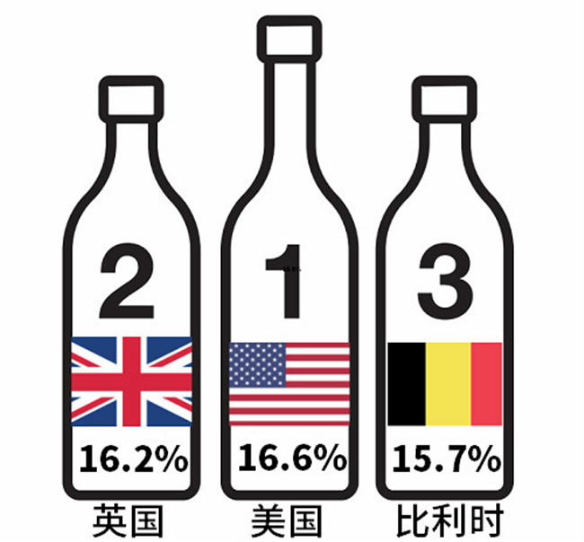 按大洲劃分的話,歐洲、北美和亞洲是主要出口地,羅納河谷葡萄酒分別有61%、24%和12%的出口量流向了這些地區,其他的出口市場合起來僅占3%。若按國家劃分的話,羅納河谷葡萄酒的前三大貿易國則依次為美國(約1,465萬升)、英國(約1,427萬升)、比利時(約1,379萬升),大概分別占據羅納河谷葡萄酒出口總額的16.6%、16.2%和15.7%。此外,中國市場可以說是一匹“黑馬”,2019年的出口量約為697萬升,占據的出口份額從2014年的第八位躍升至現在的第四位,而這得益于該產區對中國市場的重視與持續發力。
