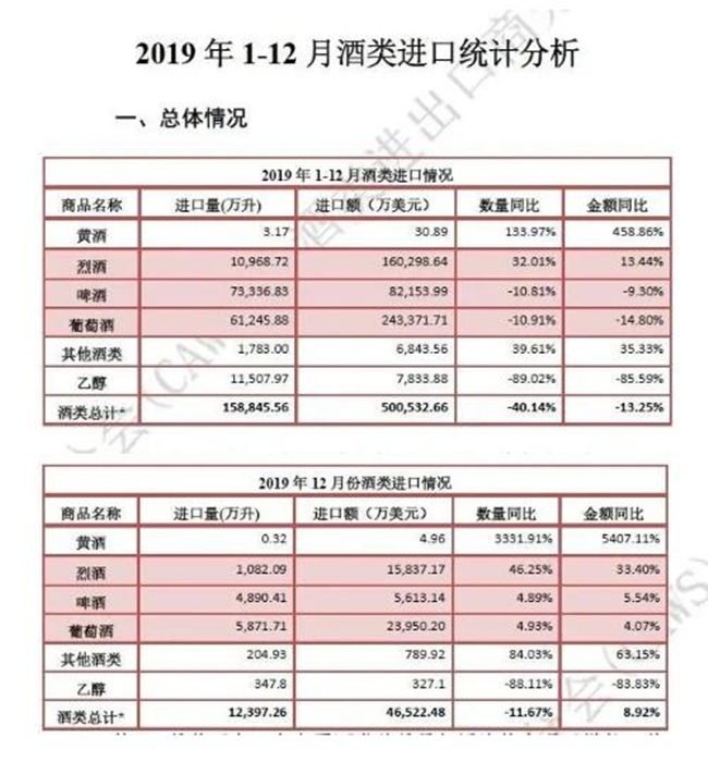 日前,中國(guó)食品土畜進(jìn)出口商會(huì)酒類進(jìn)出口商分會(huì)發(fā)布了最新的酒類進(jìn)口數(shù)據(jù)。