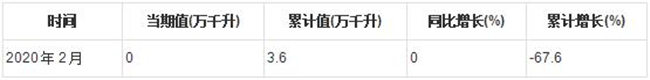 根據中國報告大廳對2020年1-2月全國葡萄酒產量進行監測統計顯示:2020年1-2月全國葡萄酒產量為3.6萬千升,累計下降67.6%。