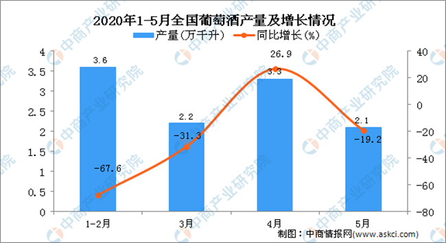 • 2020年1-5月全國葡萄酒產(chǎn)量同比下降32%