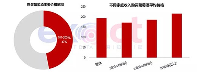 調查數據顯示,47%的受調查者中購買葡萄酒價格在101元至200元之間,整體偏向中低端;從消費的平均價格來看,自用葡萄酒的購買價格約在193.6元/瓶。