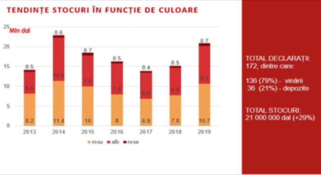 在2018-2019葡萄酒年,基于過去兩年創(chuàng)紀(jì)錄的大收成,葡萄酒供需比基本上達(dá)到了自2013年實施禁運(yùn)后的數(shù)值。過去7年的平均數(shù)據(jù)顯示,鑒于摩爾多瓦共和國85%的葡萄酒銷往國外,產(chǎn)自摩爾多瓦的葡萄酒是出口市場所能消化的4倍。