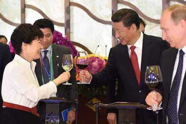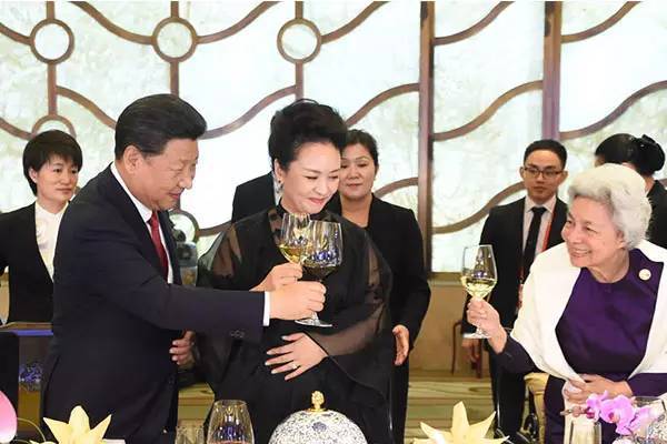 宴會上一團和氣,習大大與彭麻麻與各國的領(lǐng)導(dǎo)親切的交談,整個宴會廳都呈現(xiàn)出一派其樂融融的氣氛。